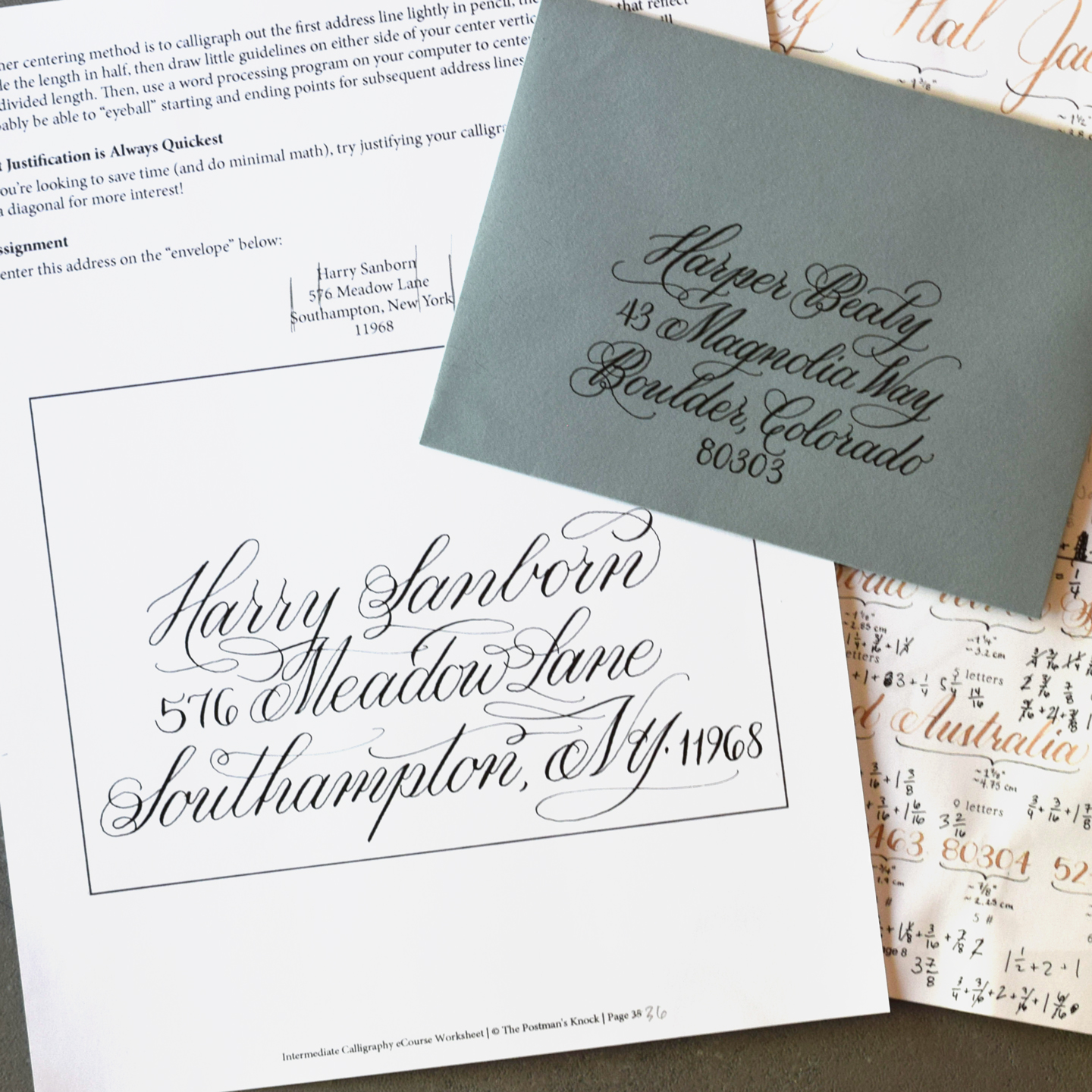 The Postman’s Knock Intermediate Calligraphy Course is very well designed and comprehensive and includes both video lessons and a detailed printable workbook. Before going through the course, I was rather apprehensive about flourishing. After completing the worksheets included with the program, I was much more eager to give flourishing a try in my own calligraphy projects and personal letters. I enjoyed working through the course at my own pace, often filling out one page per day (or per week, if life got busy), and enjoyed the encouraging comments I was given when showing off my progress to others in my community. After completing the assignments at the end of the program, there’s a section to submit photos of the work. Lindsey was so kind to go through my work personally, giving both praise and suggestions for improvement. I highly recommend anyone interested in taking the next step with their calligraphy, especially those doing pointed pen calligraphy, to apply themselves to the lessons in TPK’s Intermediate Course.